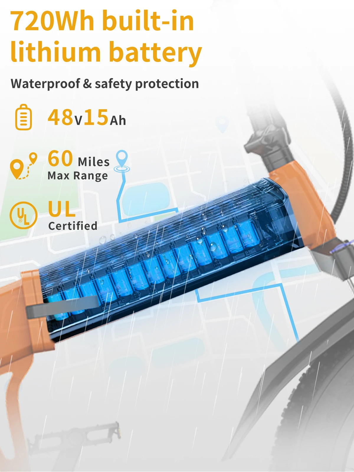 ๐ฐ๐ด๐ฉ/๐ญ๐ฑ๐๐ (๐ณ๐ฎ๐ฌ๐ช๐) ๐๐๐ง๐๐๐จ๐ -๐๐๐ง๐ง๐๐ฅ๐ฌ: Enjoy long-distance riding with the 48V 15Ah lithium-ion battery, allowing for up to 60 miles on pedal assist mode per charge for 5-6 hours. The bicicleta elรฉctrica is equipped with the BMS system that provides 14 types of protection, making our battery safer and more cycle life. E bike have two charging methods, remove the battery to charge or directly charge the bike, perfect for your daily commute or travel.